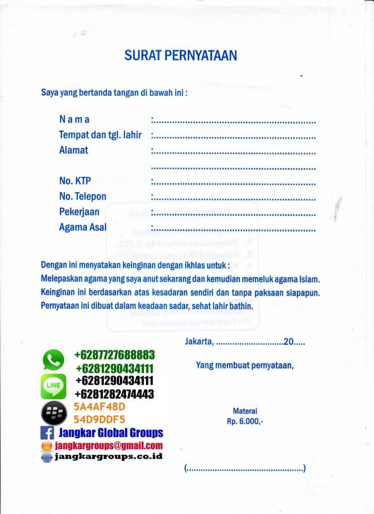 | Judul: Surat Pernyataan Masuk Agama Islam |